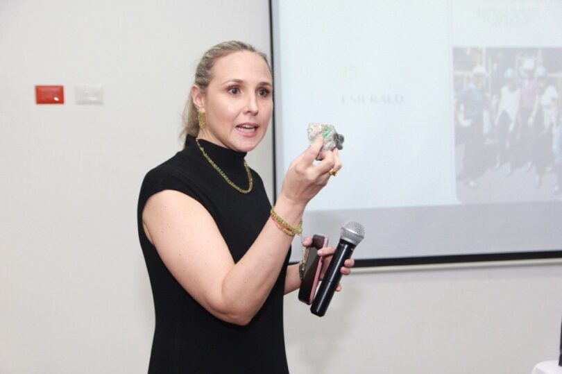 Las diseñadoras colombianas, Liliana Botero y Alejandría Llano, quienes realizarón las exposiciones centrales del encuentro, dondeexplicarón que la esmeralda es la piedra insignia de su país, además contaron la historia y características de esta gema.