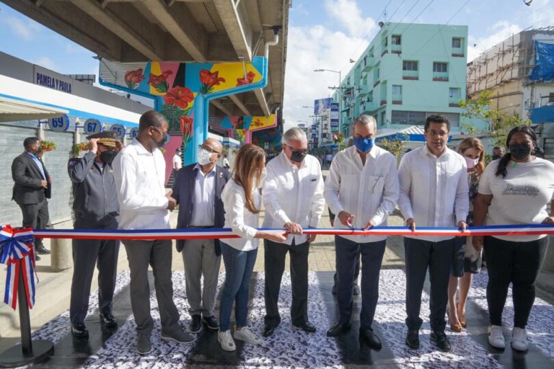 Santo Domingo.- En un acto encabezado por el presidente de la República, Luis Abinader Corona, la alcaldesa del Distrito Nacional, Carolina Mejía y el ministro de Turismo, David Collado, se entregó la primera etapa del remozamiento de la avenida Duarte con París.