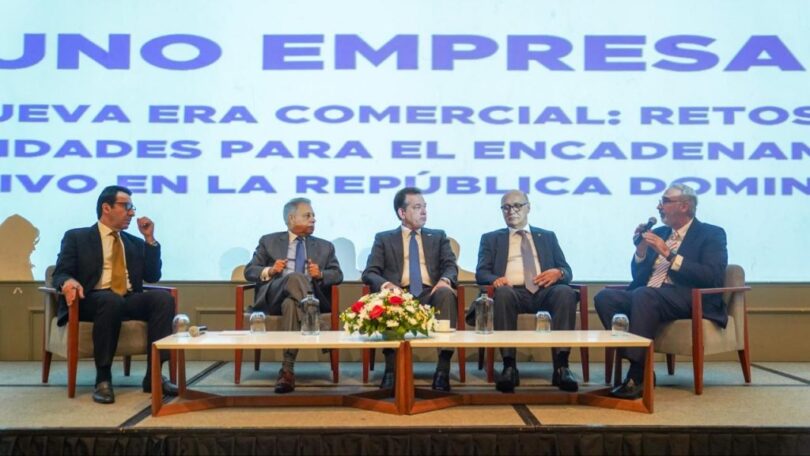 Por su parte, Leonel Castellanos Duarte, presidente de la UNE, destacó que el encadenamiento productivo es un pilar esencial para el crecimiento sostenible. Castellanos enfatizó la necesidad de modernizar la infraestructura logística, fomentar el crédito productivo y promover la innovación tecnológica para que las MiPymes puedan insertarse plenamente en las cadenas de valor. “El encadenamiento productivo no es solo una política económica: es una estrategia de desarrollo nacional”, afirmó. El evento tuvo lugar en el Salón A1 del Hotel Catalonia. Incluyó un panel de preguntas y respuestas al ministro Bisonó, por parte de representantes del sector privado presentes. Por la Unión Nacional de Empresarios (UNE), el evento contó con la presencia de sus principales directivos: Ángel Nader, primer vicepresidente; Ángelo Viro, segundo vicepresidente; Luis Rojas, secretario; Luis Moquete, tesorero; y el expresidente Miguel Dauhajre.
